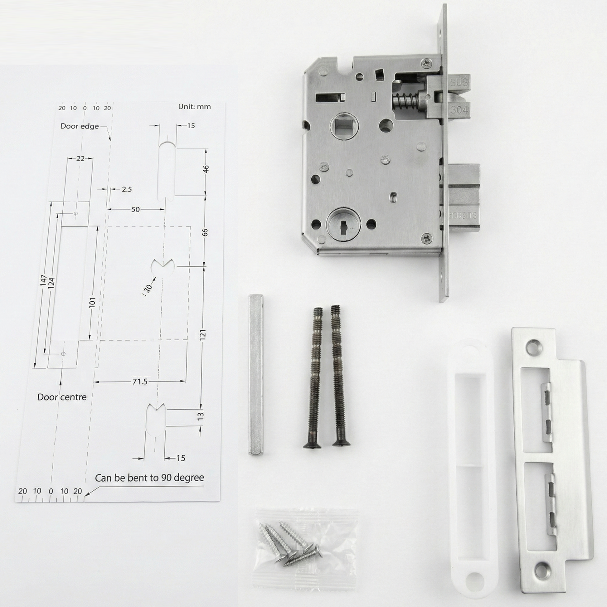 - Lock body: 70 mm (depth) × 100 mm (height) × 14 mm (thickness)