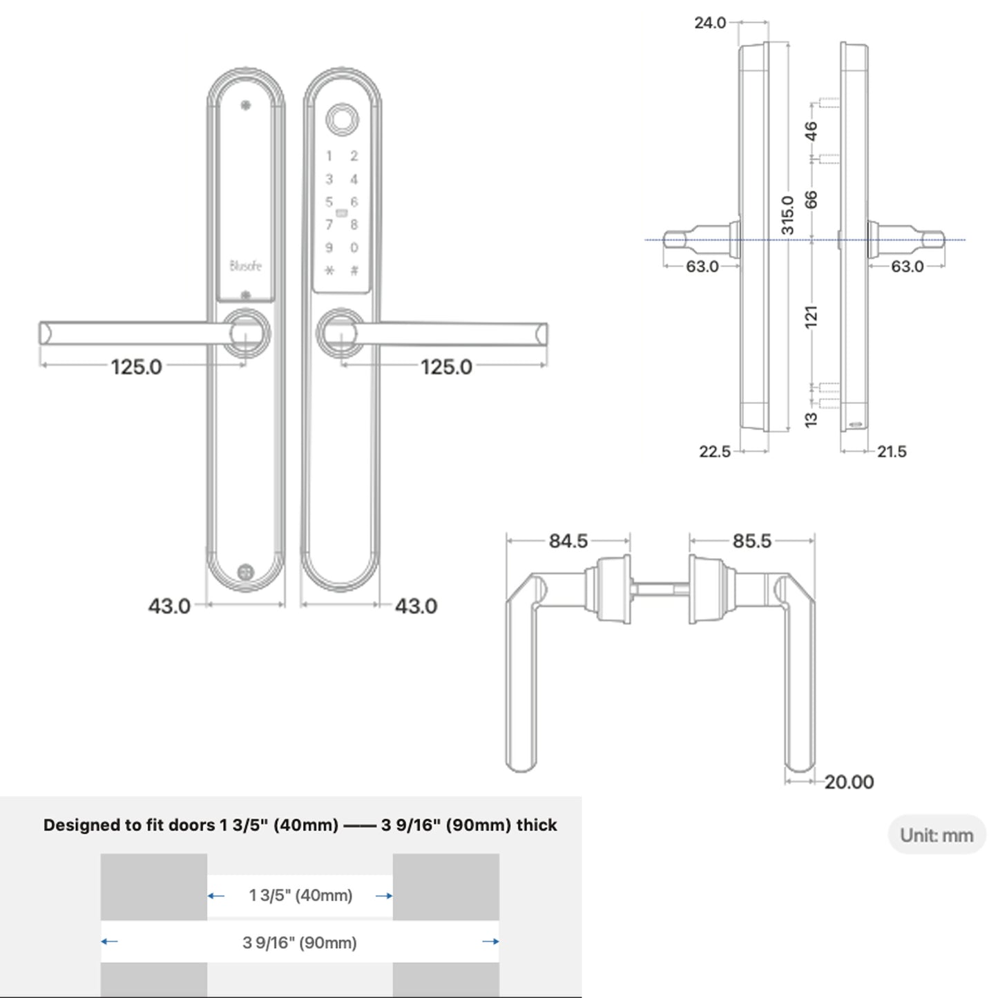 Blusafe Apollo Silver Keyless Door Handle for Home Security, Finger Print, Key Card, Keypad, App Control, Remote Lock/Unlock
